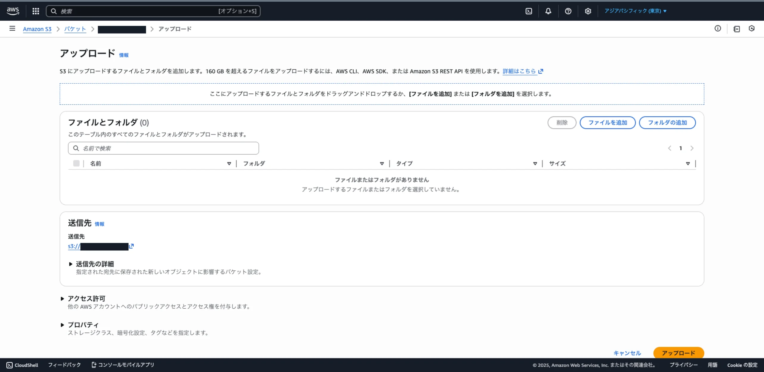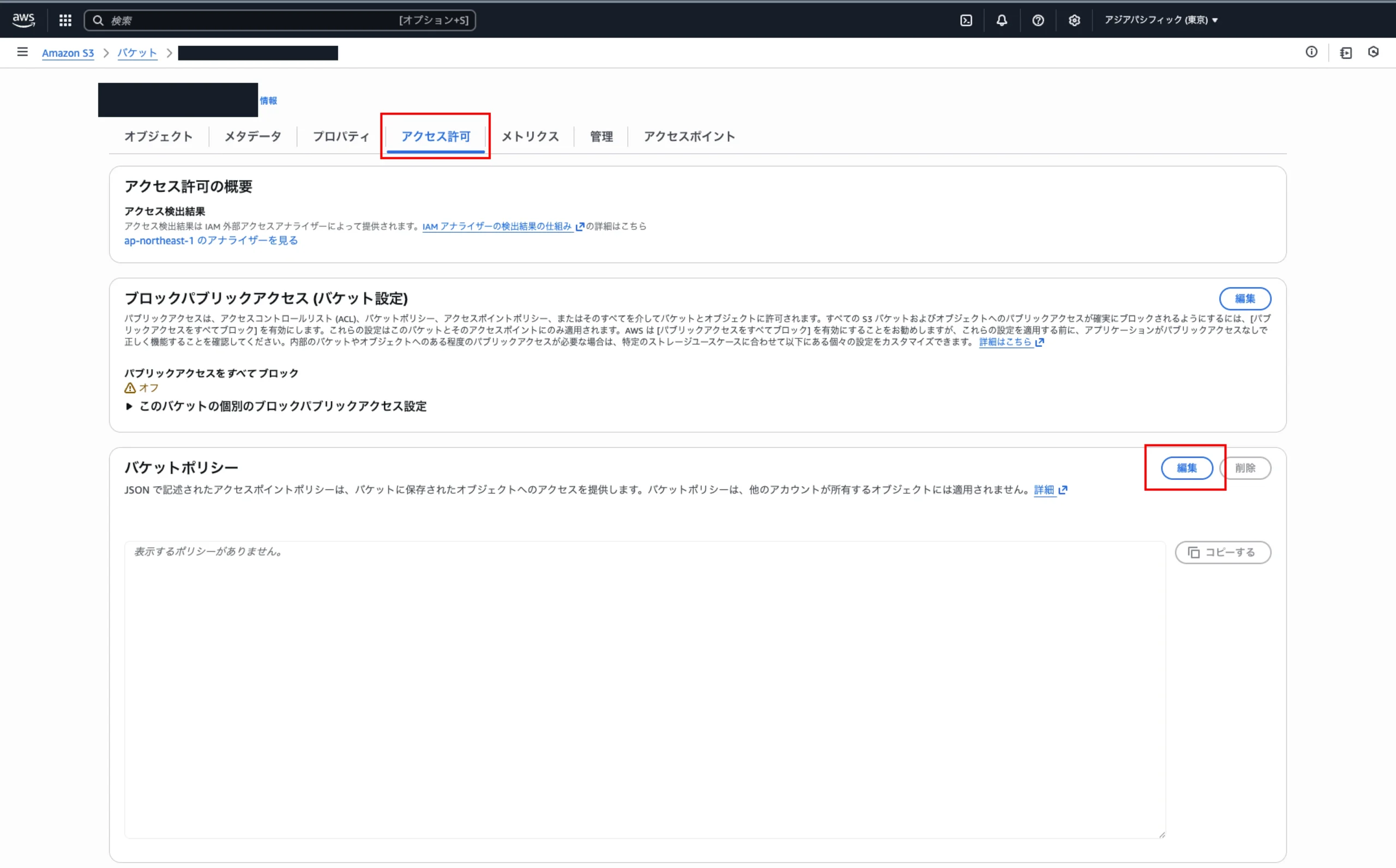 バケット名の箇所は自分のものに置き換えてくださいね。