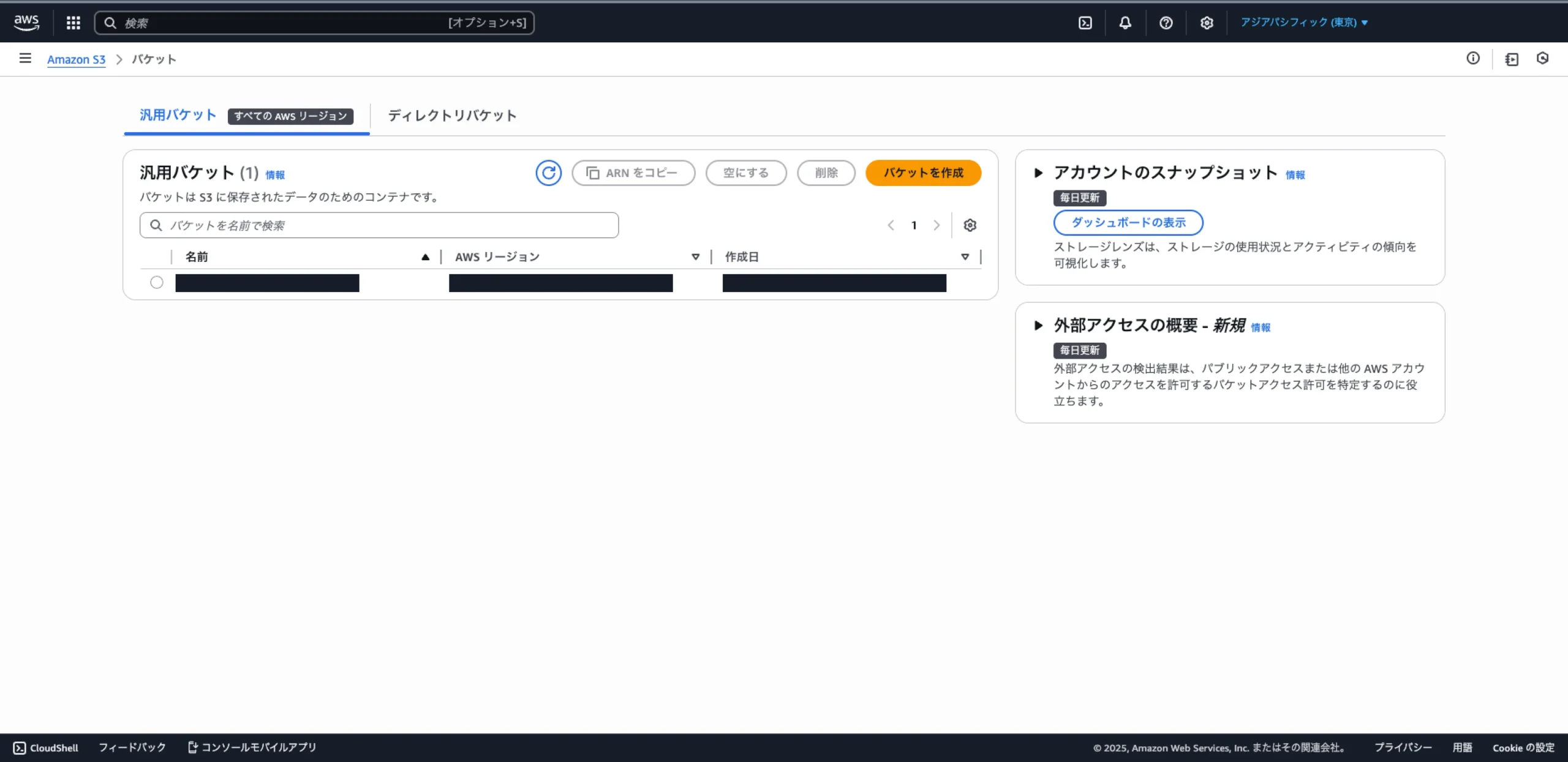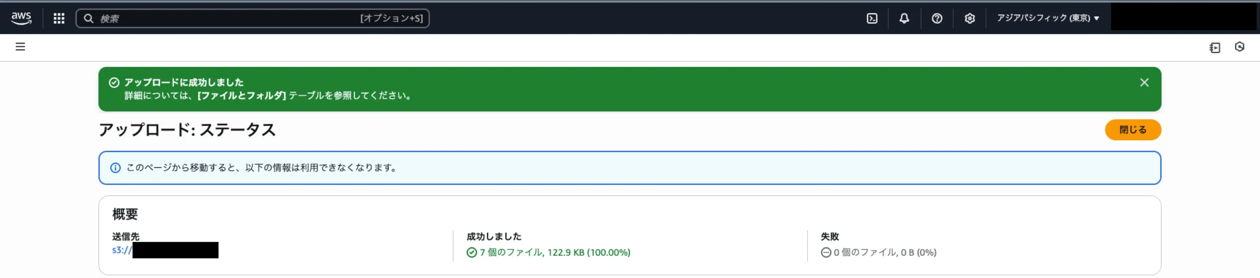 次は作成したバケットにサイトをアップロードします。バケット一覧ページに移動しましょう。