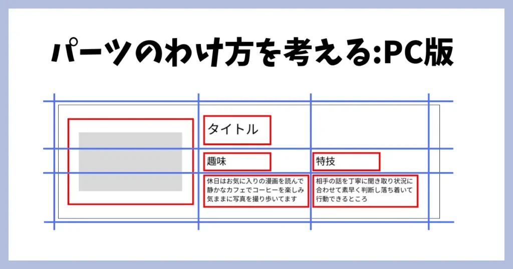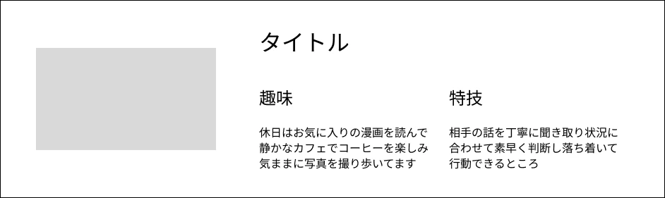 画像が左側、テキストコンテンツが右側にあるので、グリッド状の中で指定する必要があります。