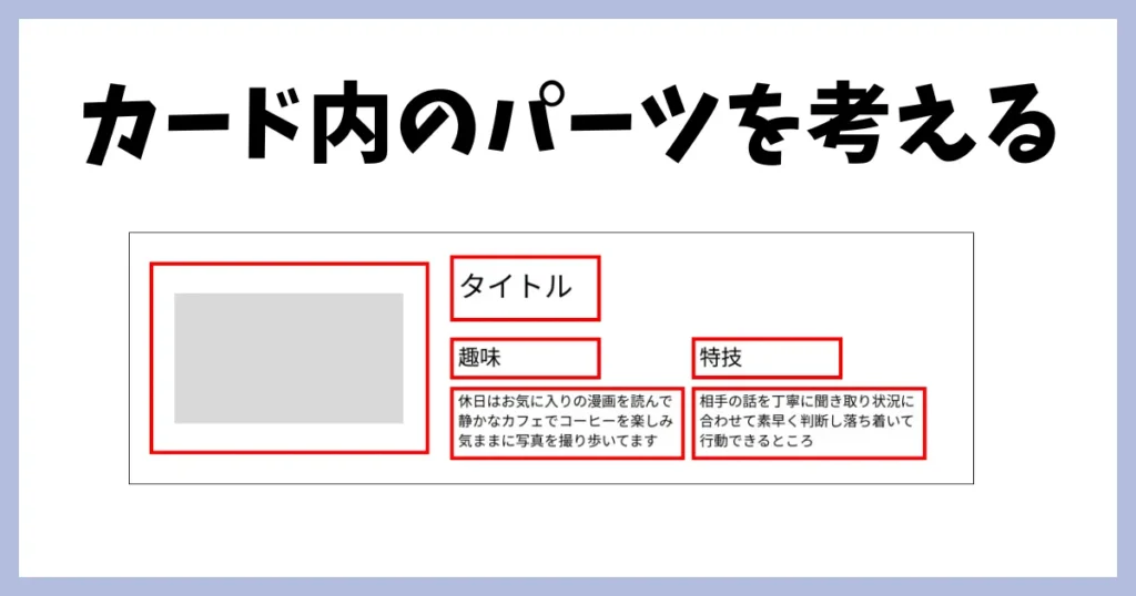 全体をカード、中の要素を子要素として組みました。CSSはBEMを使用しています。