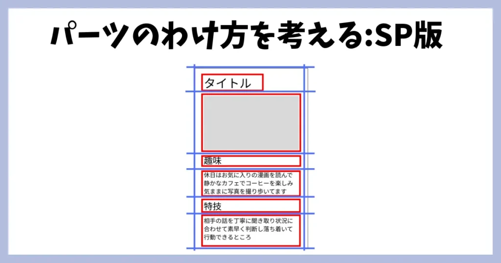 SPのデザインに合わせてHTMLを作ったので、ブロック要素が上から積み上がるように組むだけで出来上がります。