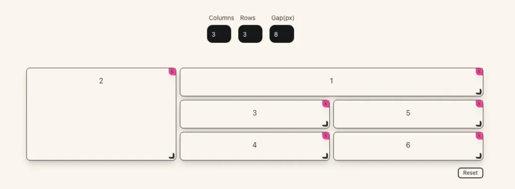 ジェネレーターを3×3にして、画像のように割り振るとCSSを作ってくれるので、あとはクラス名を合わせて作れば出来ます。