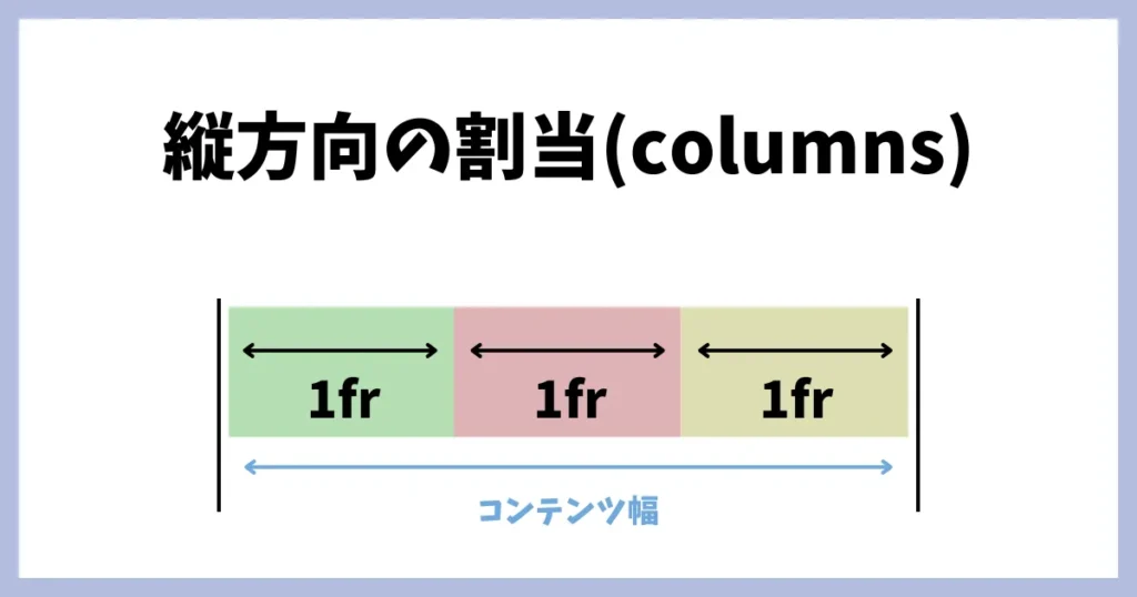 grid-template-columns: repeat(3, 1fr);横方向の割当に関して、1frを3つ、全体を均等に3等分しています。