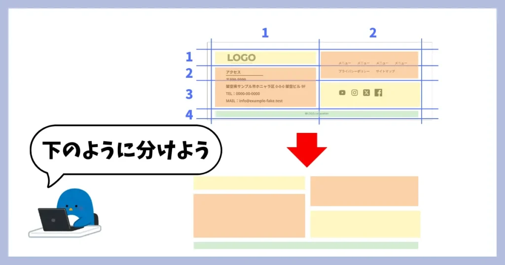 CSS Gridを使って、フッターのレイアウトをわかりやすく整理する方法を解説します。