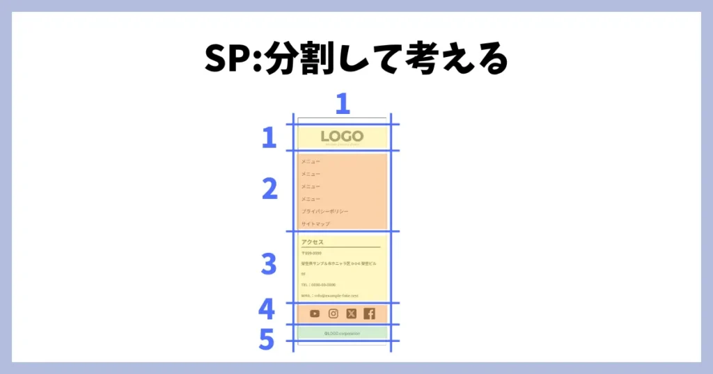 SPはシンプルに縦に積んでいるイメージで、1×5の構造にします。