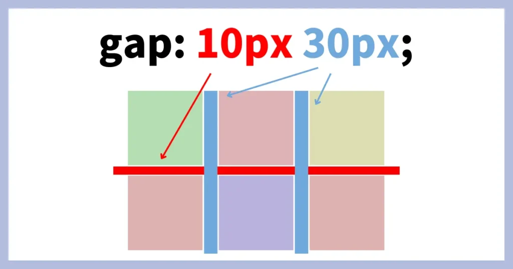 gap は 2つ書くと「縦 → 横」の順になるので、