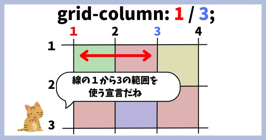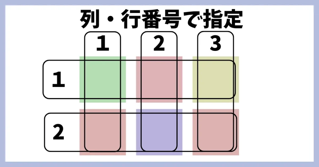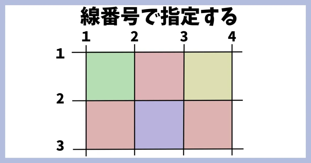グリッドの境目には線があり、線の開始位置と終わり位置を指定することで、要素の配置位置が決まります。