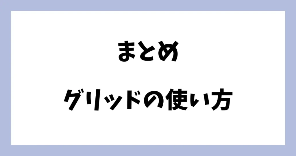 gridを使用するときには、お約束のように使うCSSプロパティがいくつかあります。それが以下3種類