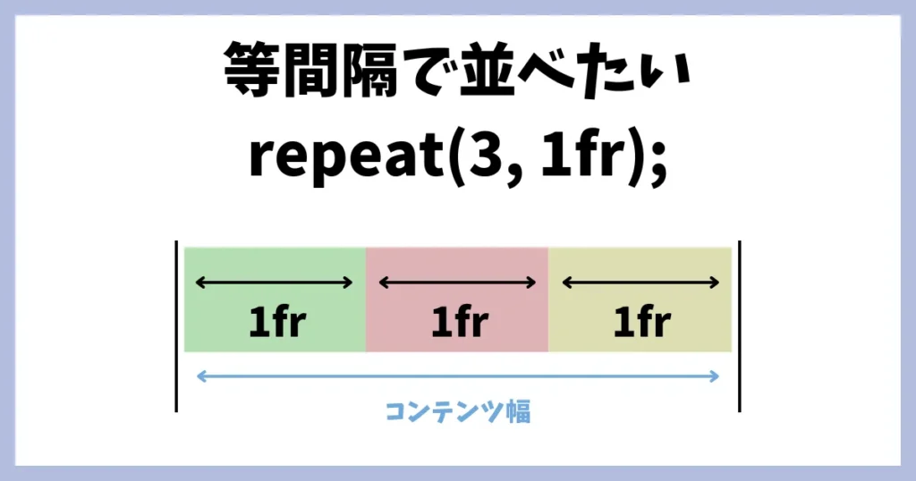 grid-template-columns: repeat(3, 1fr);- 3つのカラムを均等に並べる