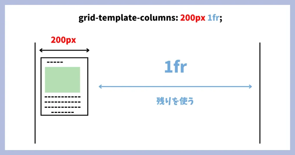 | fr | エフアール | 余ったスペースを割合で分ける | グリッドで最も便利。柔軟に横幅を割り振れる |