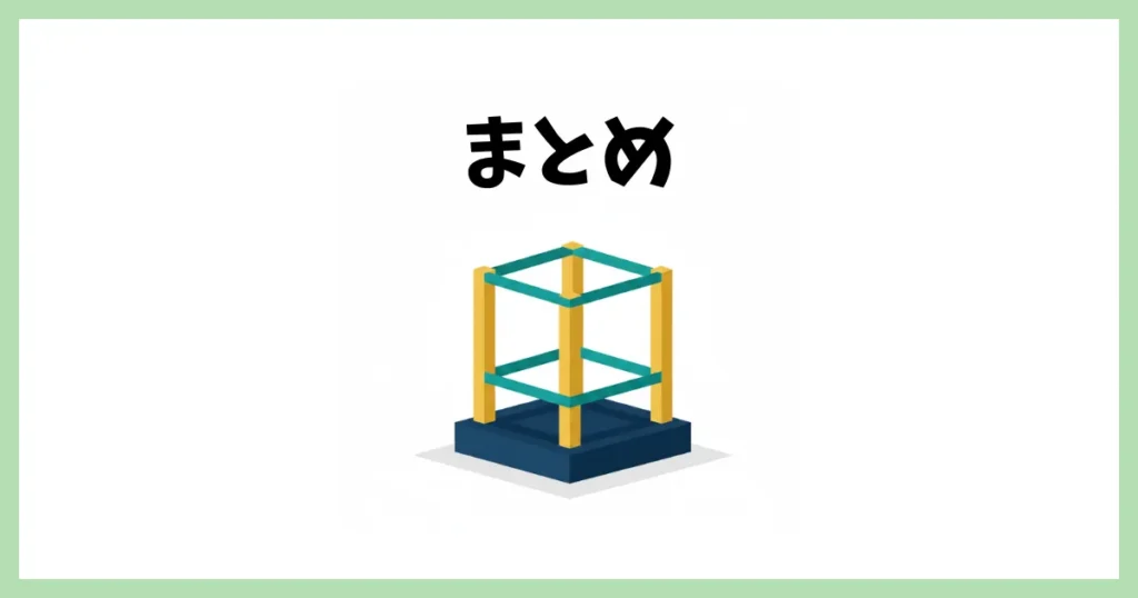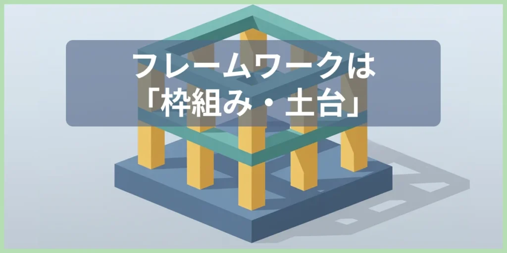 「フレームワーク」とは、「枠組み」という意味の言葉です。