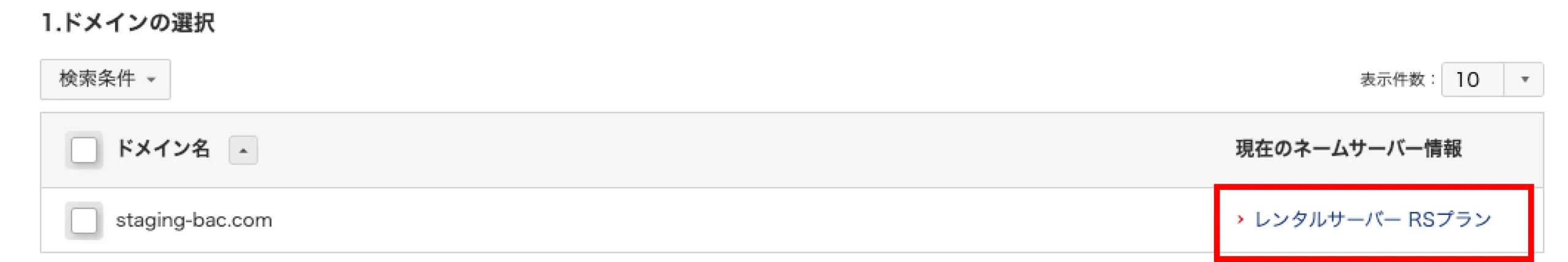 現在のネームサーバー情報が「レンタルサーバー RSプラン」となっているか確認しましょう。