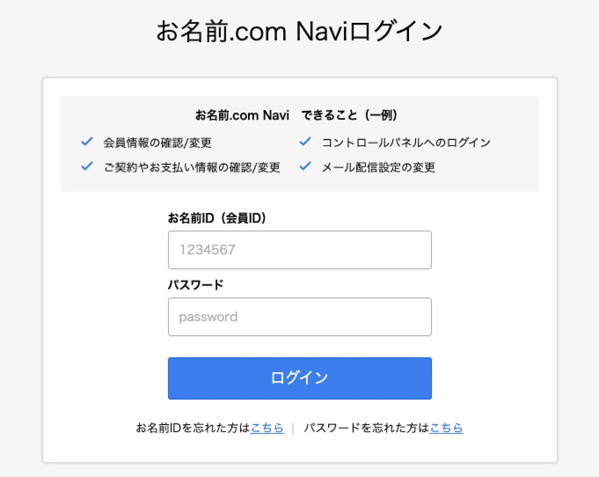 お名前.com Naviにログインします。https://www.onamae.com/navi/login/