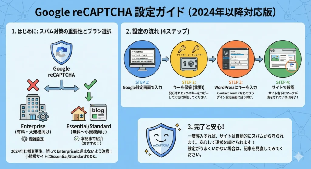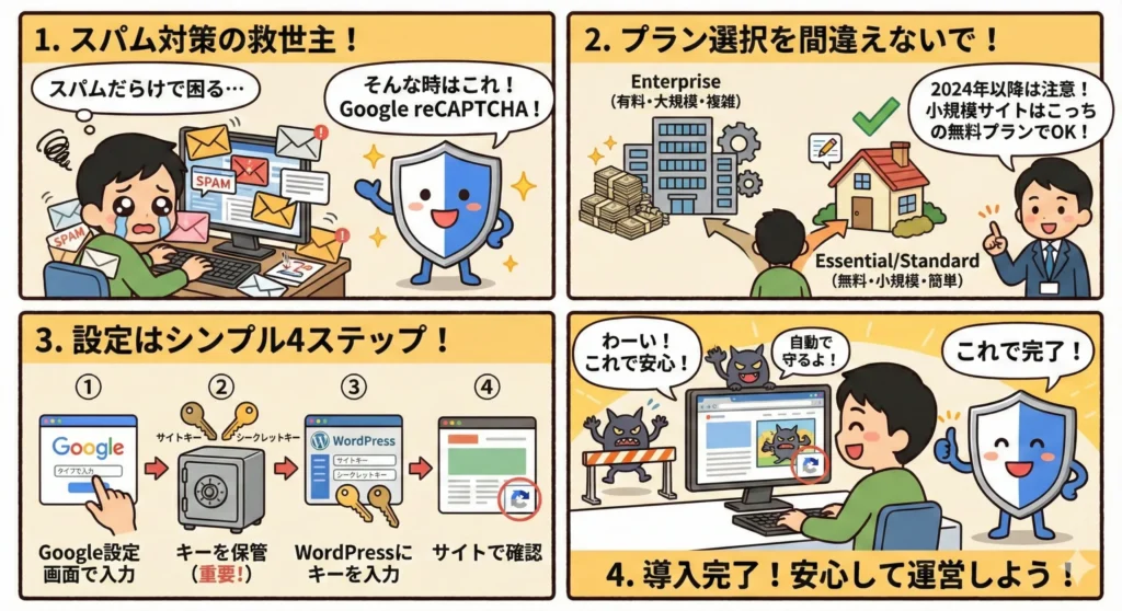 まとめ:reCAPTCHAを設定してスパム対策を強化しよう