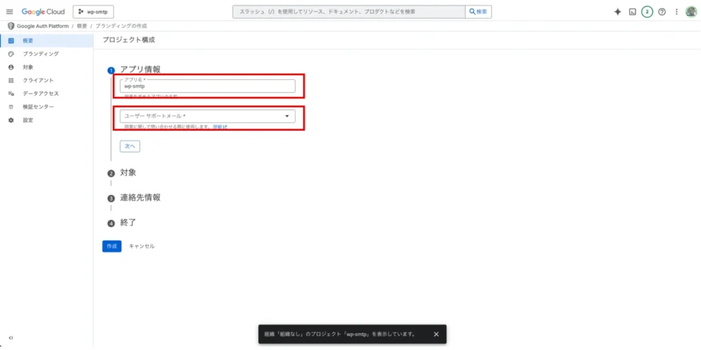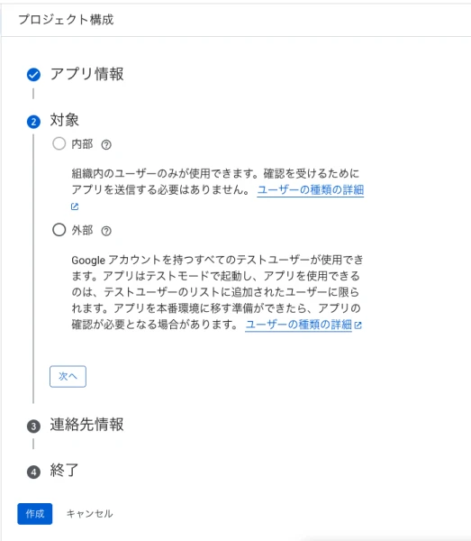 OAuthの同意画面の設定