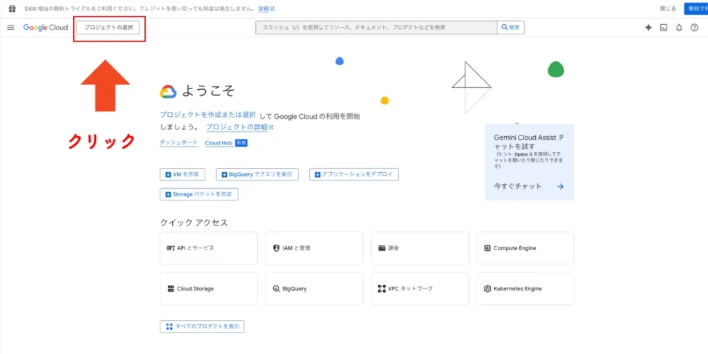 当記事の目次の項目に飛んでもらえれば大体グーグルクラウドコンソールトップページですので、お試しください。