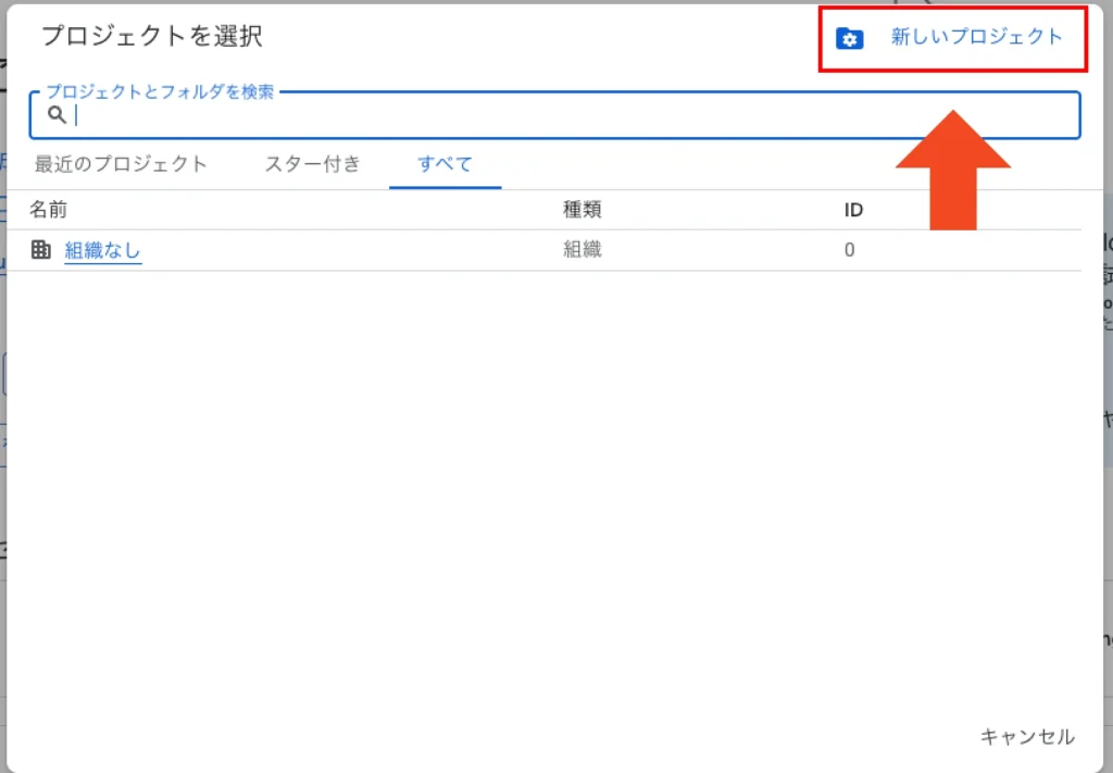 プロジェクトの選択を押した後、右上の新しいプロジェクトをクリックします。
