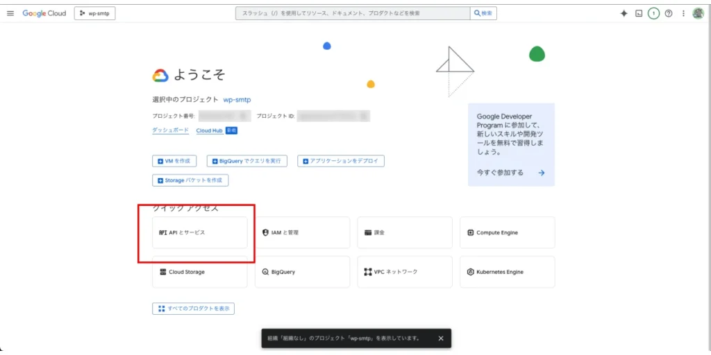 迷ったらグーグルクラウドコンソールトップに戻りゆっくり確認してください。