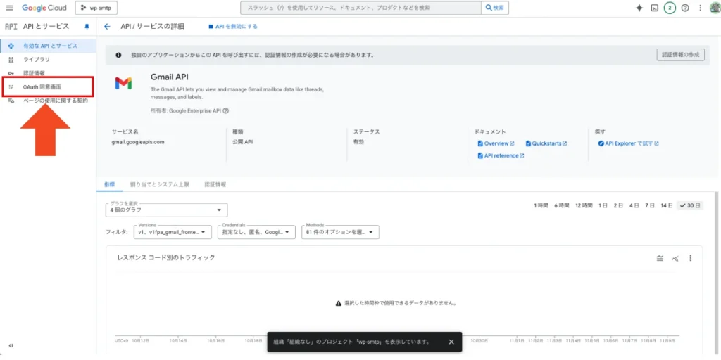 GmailAPIの有効化設定