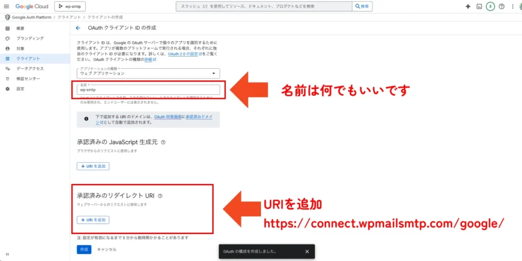 OAuthクライアントIDの作成