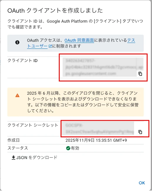 ここまでで、Google側の設定は完了です。お疲れ様でした