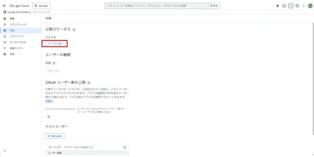 OAuth同意画面の「公開」設定漏れ