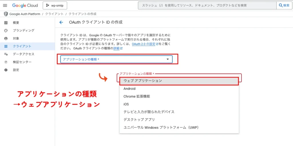そのまま、クライアントIDの作成を行います。