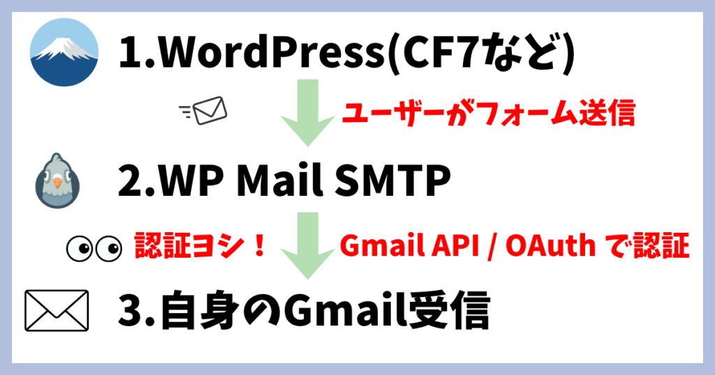 SMTPはWordPressとGmailの仲介役です。
