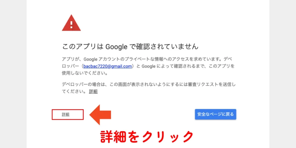 突然警告が出ますが、落ち着いて「詳細」をクリックしてください