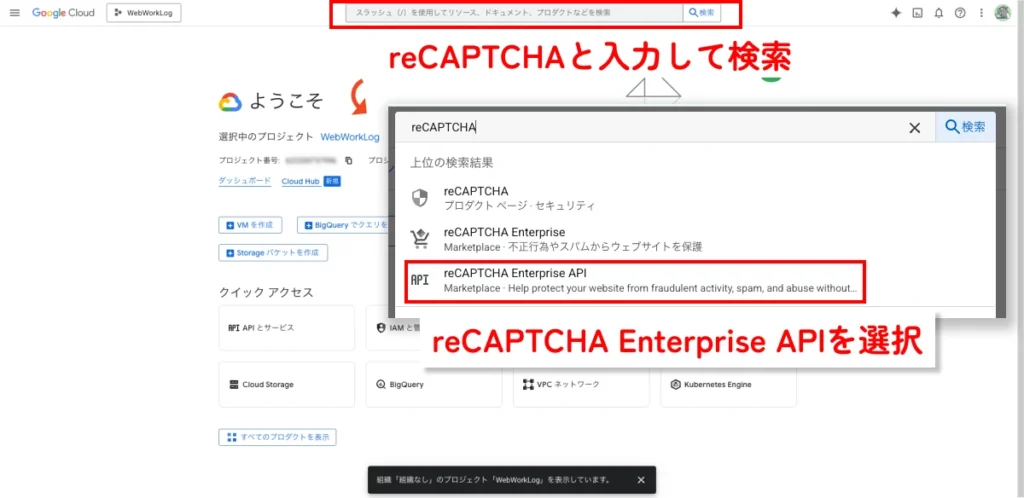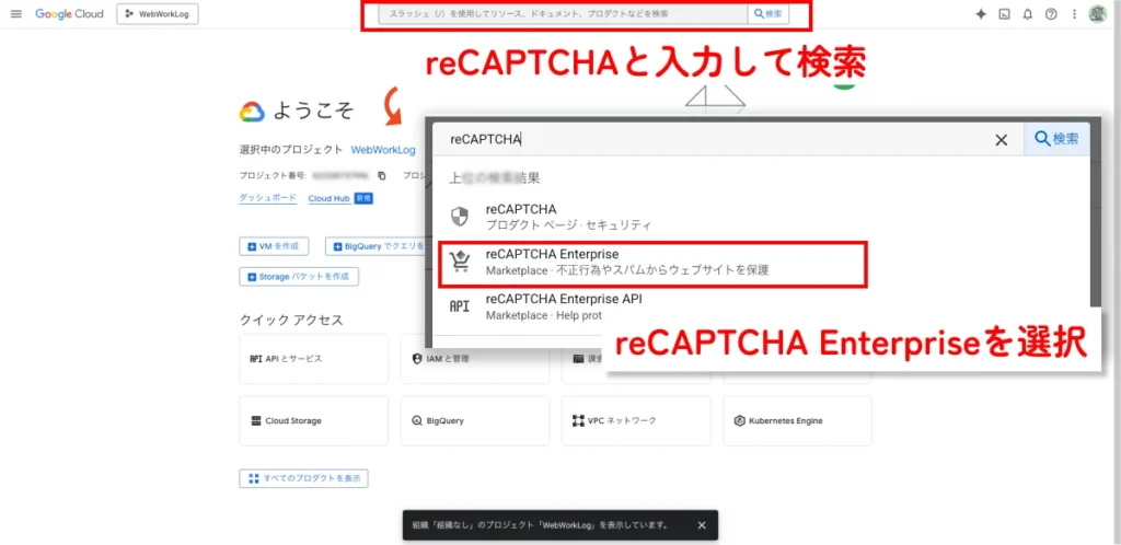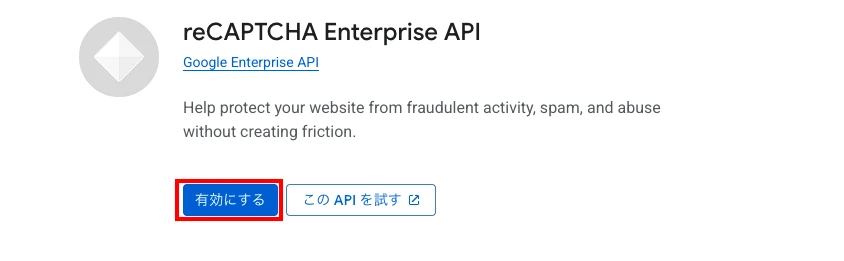 ステップ1:Google Cloud ConsoleでreCAPTCHA Enterprise APIの有効化